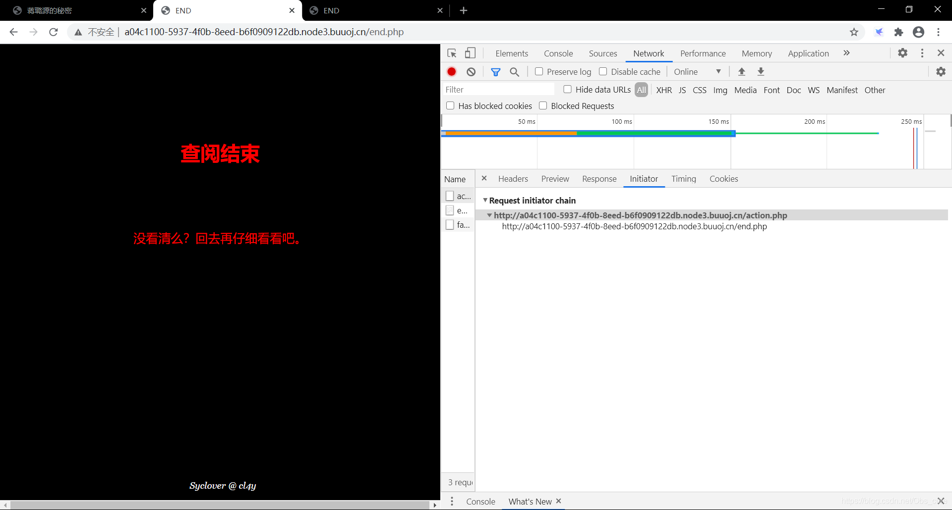 这里直接显示了end.php啊,不怎么会用burp,这里直接用谷歌自带的抓一下看看