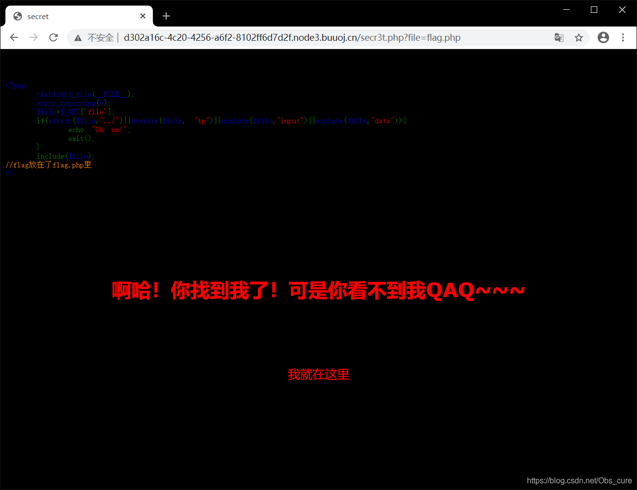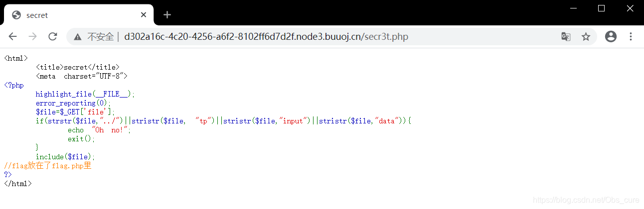 老老实实的看secr3t.php的源码吧…通过观察可以发现是构造了一个file变量然后访问文件内容,比如