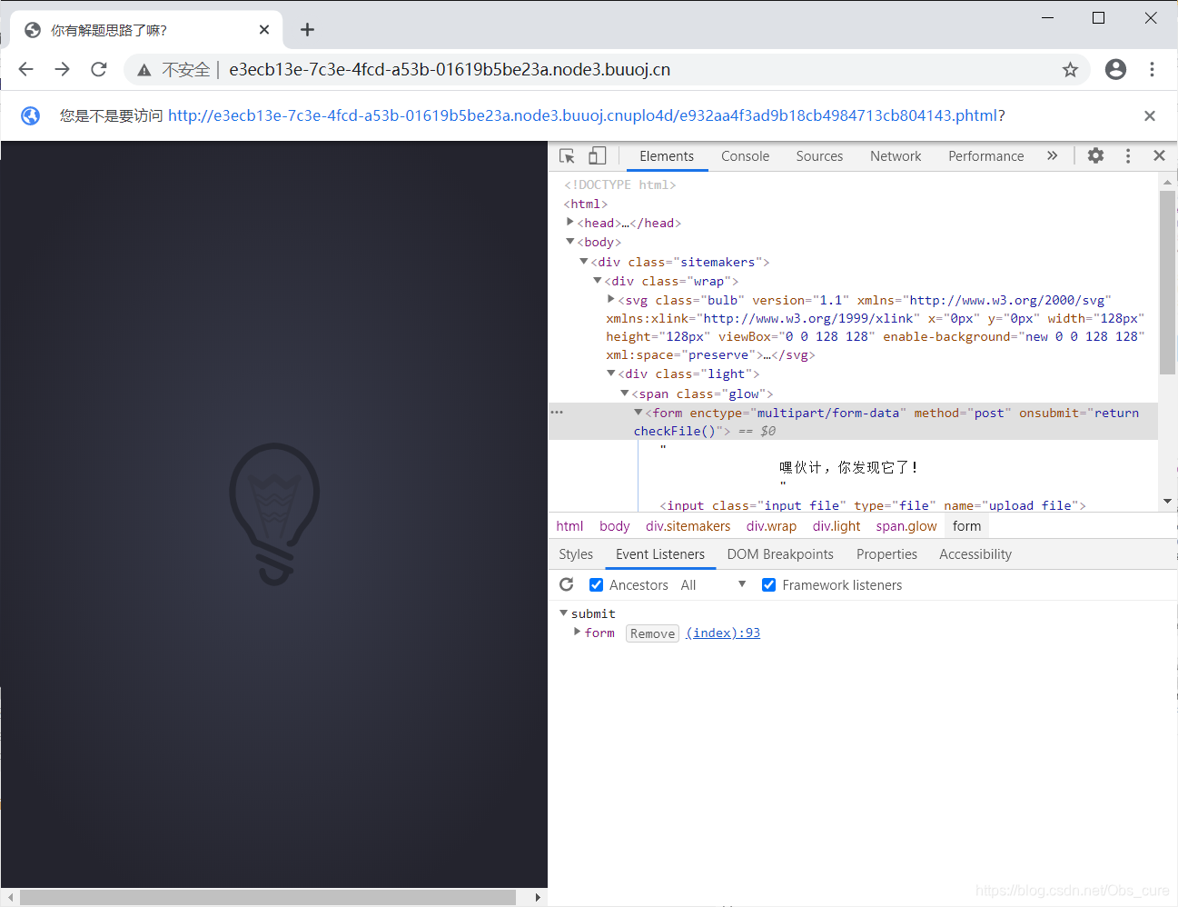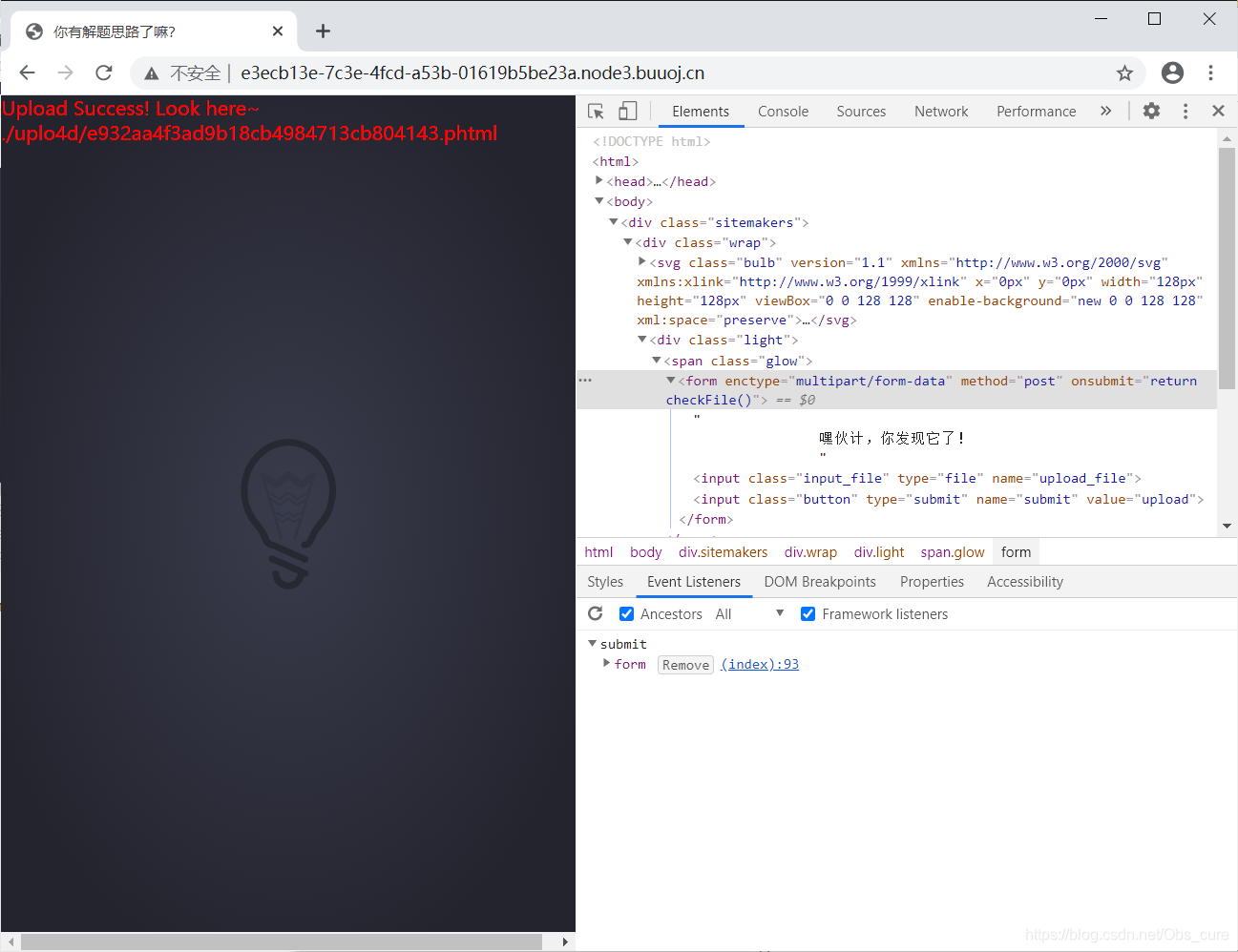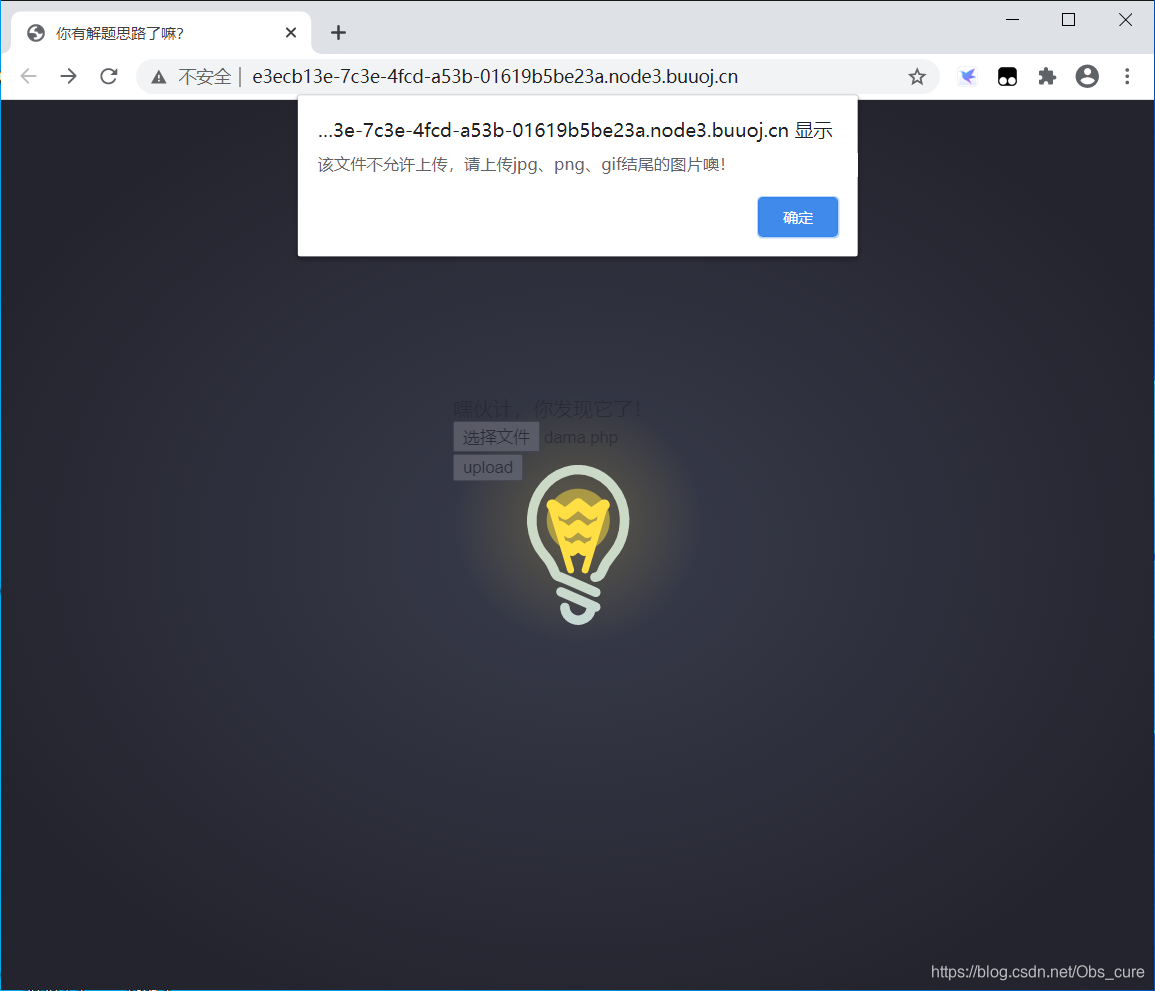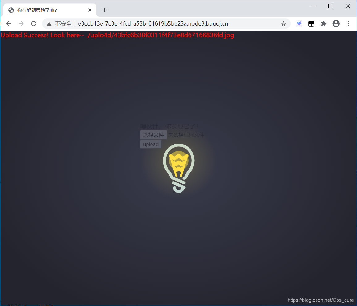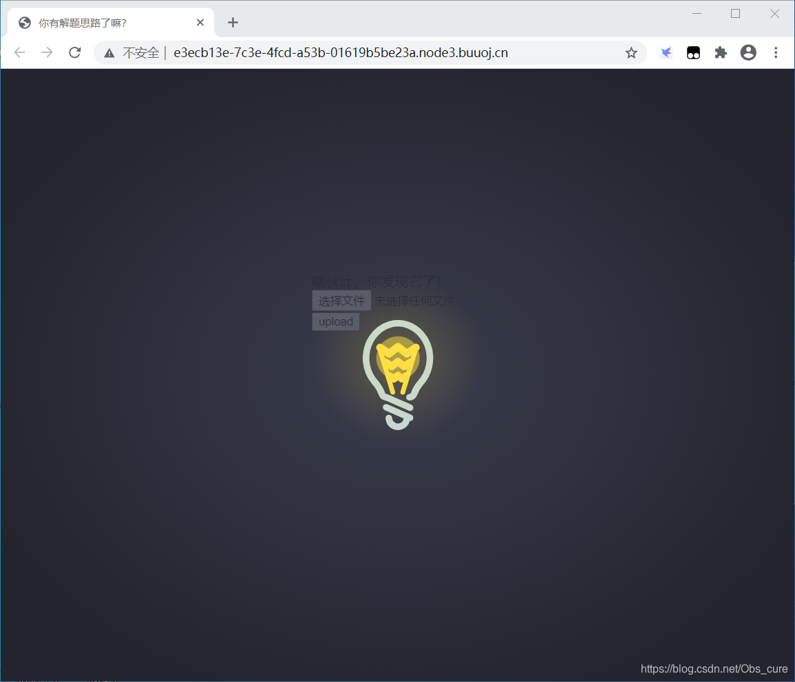 一个很可爱的灯泡,是文件上传类型的题目。先随便试试图片。