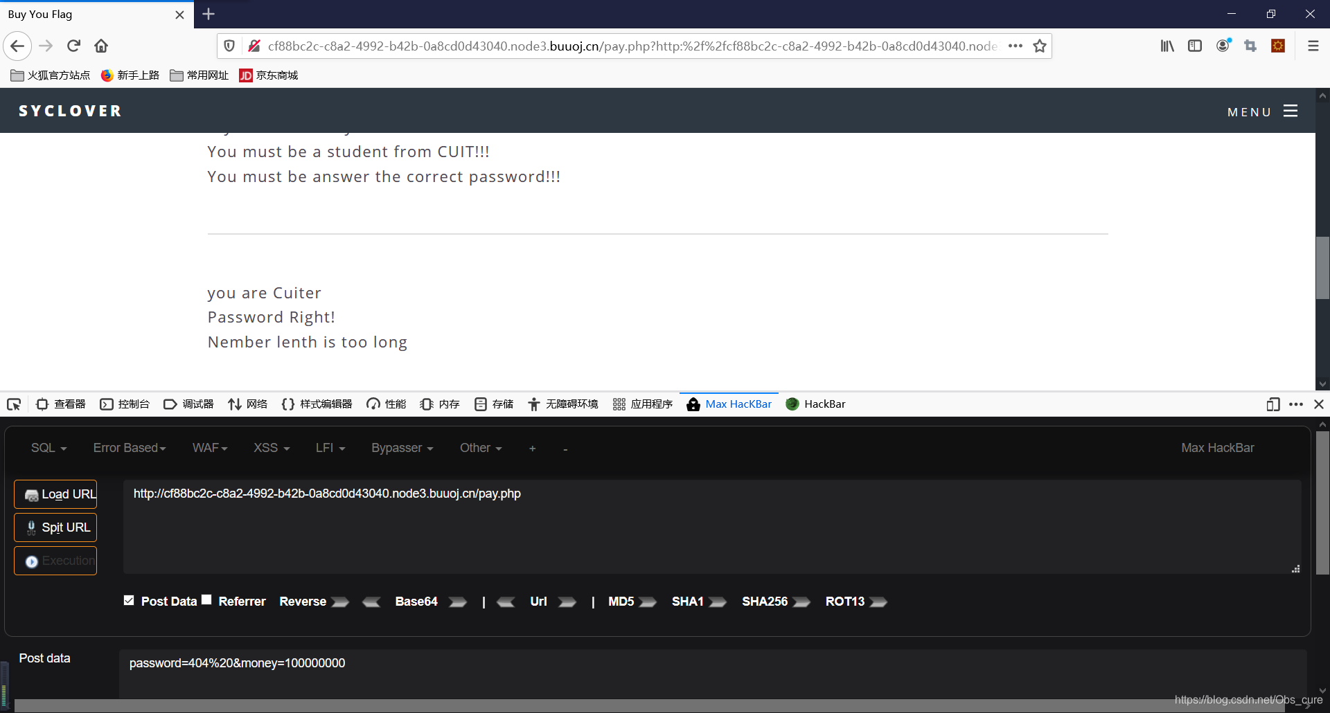 他提示我是cuiter了。但是密码不对…对照了一下payload感觉一样嘞~仔细看了半天,原来是要post提交 大意了。