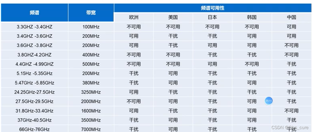| 64GHz - 71GHz | 非授权频谱 |