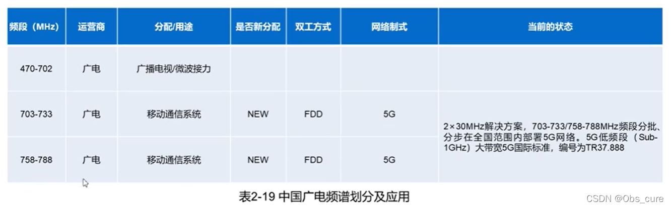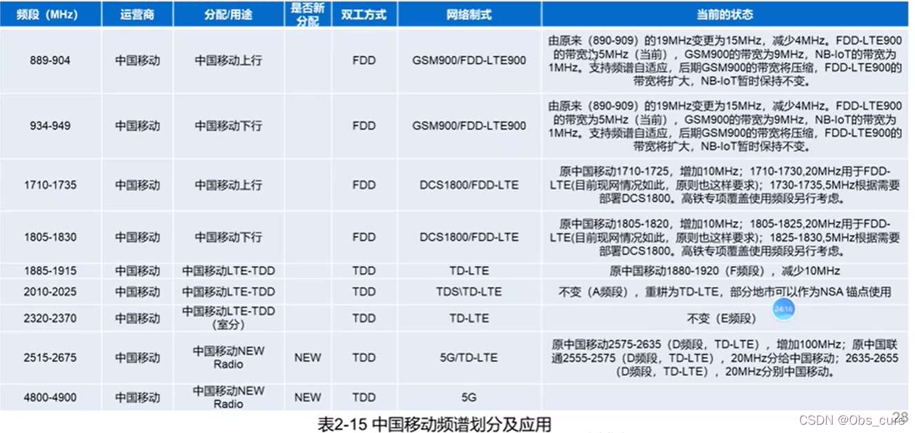 2.中国移动频谱划分及应用