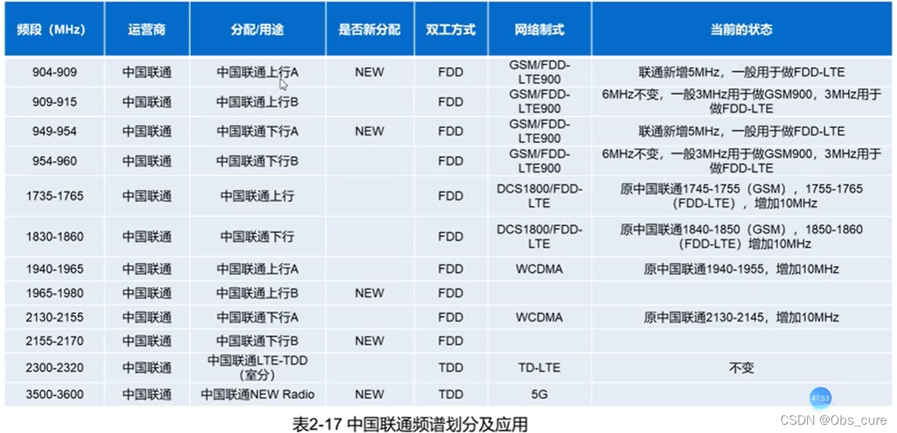 3.中国联通频谱划分及应用
