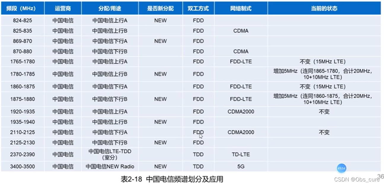 4.中国电信频谱划分及应用