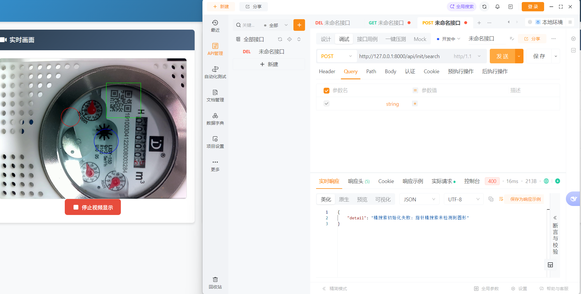 具体代码内容参照修改后的就好,我就不进行赘述了。经过测试,发现他能搜索到红色指针的表盘圆,但是无法识别得到梅花针的圆。